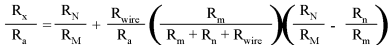 The actual balance equation of the Kelvin Double bridge is as follows (Rwire is the resistance of the thick, connecting wire between the low-resistance standard Ra and the test resistance Rx):